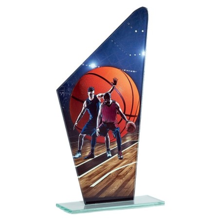 Trophée en Verre imprimée collé sur un socle en Verre Jade transparent