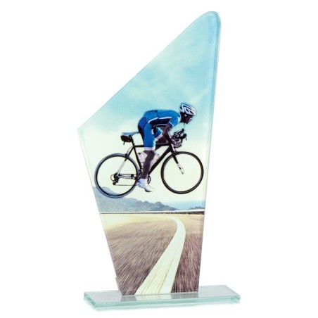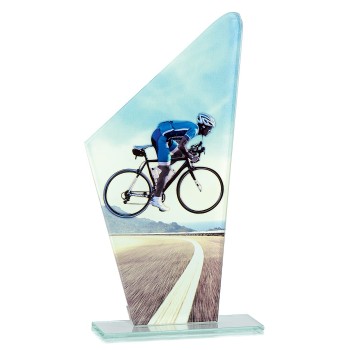 Trophée en Verre imprimée collé sur un socle en Verre Jade transparent