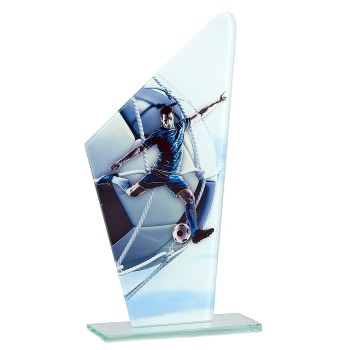 Trophée en Verre imprimée collé sur un socle en Verre Jade transparent