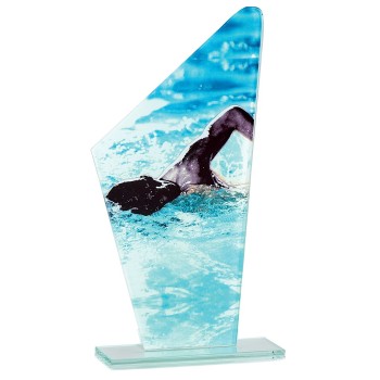Trophée en Verre imprimée collé sur un socle en Verre Jade transparent