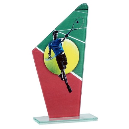 Trophée en Verre imprimée collé sur un socle en Verre Jade transparent
