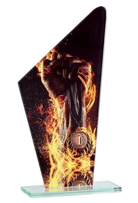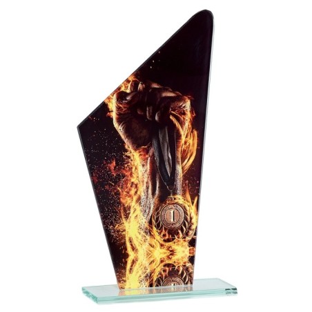 Trophée en Verre imprimée collé sur un socle en Verre Jade transparent