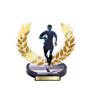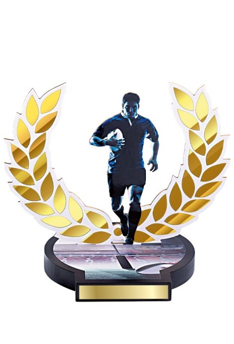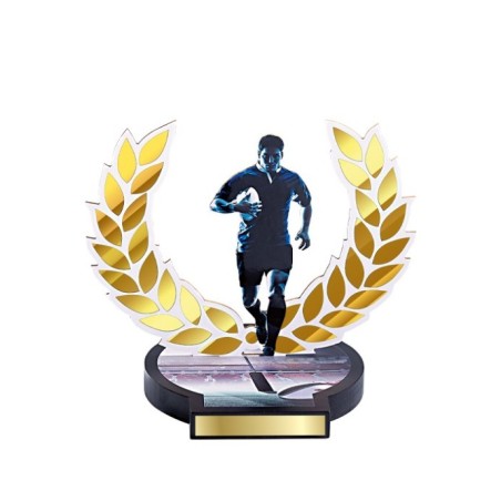 ✓ Double Motifs : Sport mis en avant entre les lauriers dorés et repris sur le socle