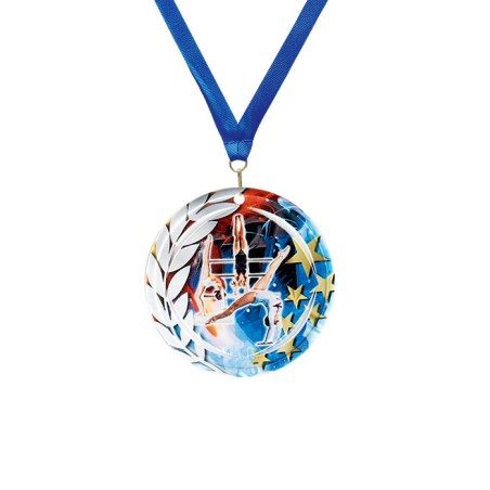 Déstockage à -60% : Médaille en céramique émaillée, livrée avec un ruban bleu